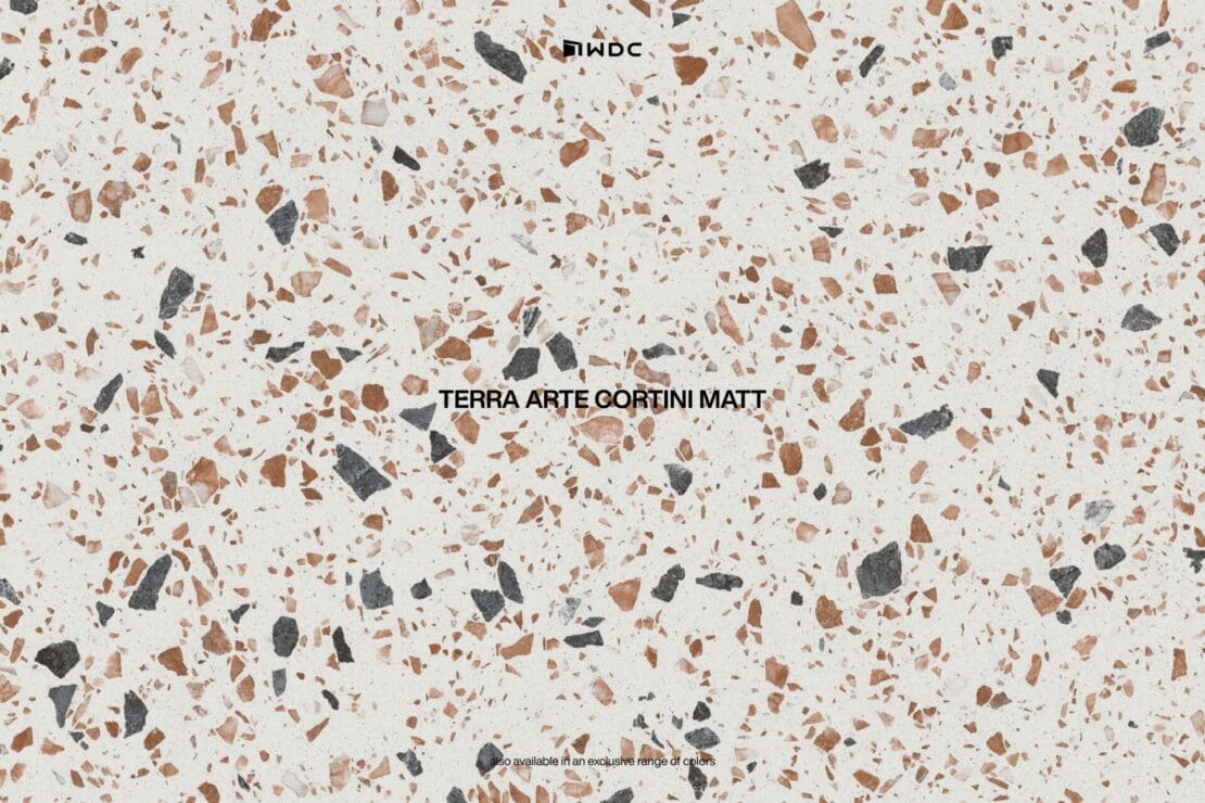 Terra Arte Cortini Matt 60×60 cm : แรงบันดาลใจจากหินขัดที่มีองค์ประกอบแบบสุ่มของหินที่ฝังอยู่ในคอนกรีต แสดงให้เห็นถึงพื้นผิวที่สวยงามสามารถเข้ากับโอกาสในการตกแต่งที่หลากหลาย เพิ่มมิติความงดงามที่ไม่ว่ามองกี่ครั้งก็ยังสวยงามไม่เคยเปลี่ยน