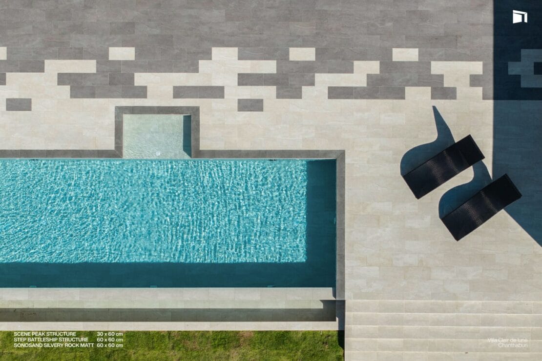 WDC ได้ร่วมสร้างความสวยงาม และมอบประสบการณ์การพักผ่อนให้ผู้เข้าพัก ผ่านวัสดุตกแต่งพื้นผนังหลากหลายรุ่น ไม่ว่าจะเป็นบริเวณสระว่ายน้ำ, ห้องนอน และห้องน้ำ ในพูลวิลล่า Villa Clair de lune Chanthaburi